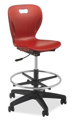 Alumni gives you the option to have a swivel chair with or without a foot ring. They are both economically smooth and have easy mobility for students and teachers. Alumni’s Explorer lab-height gas-lift chair provides seating comfort for the arts and sciences. Specifically designed with a smooth back patented flat ribbing support sytstem though the center back of the seat reffered to as the “Power rib.” The “Power rib” is essential to achieving the rib less deisgn that has the results of durability, comfort and strength.